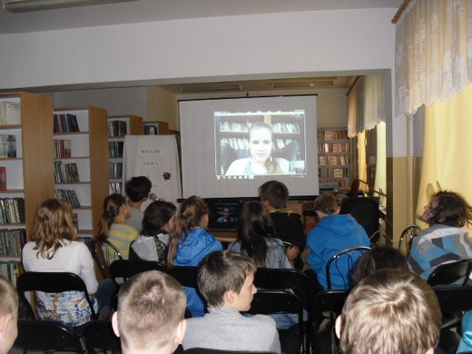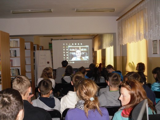 Uczniowie gimnazjum uczestniczyli dziś w nietypowym spotkaniu autorskim, które odbyło się w Gminnej Bibliotece Publicznej w Baniach Mazurskich. Była to wspaniała przygoda wirtualna z pisarką Gają Kołodziej, autorką książek dla młodzieży i nie tylko. W swoim dorobku 22-letnia literatka ma już 5 tytułów! Debiutowała w 2008 roku opowiadaniem pt. „Moje jedyne marzenie", które zostało opublikowane w zbiorze „7 kolorów tęczy". Spotkanie odbyło się przez Skypa i miało charakter swobodnej konwersacji . Pani Gaja jest osobą niezwykle ciepłą i otwartą na ludzi, stąd wywiad z nią był „czystą" przyjemnością. Pisarka w intrygujący sposób odpowiadała na pytania czytelników i zachęciła do budowania własnego warsztatu pisarskiego.
