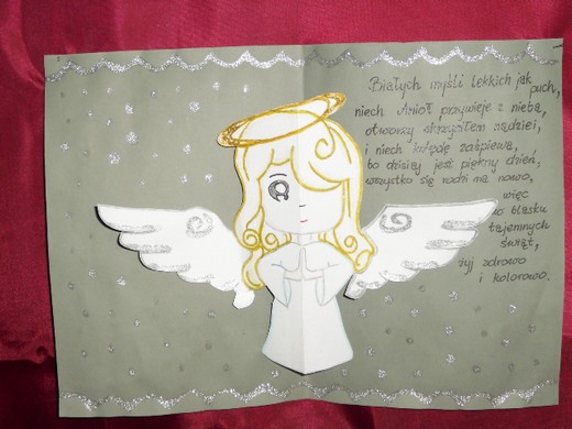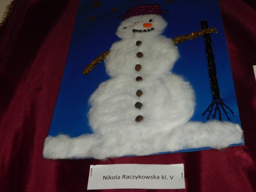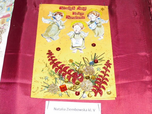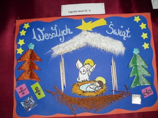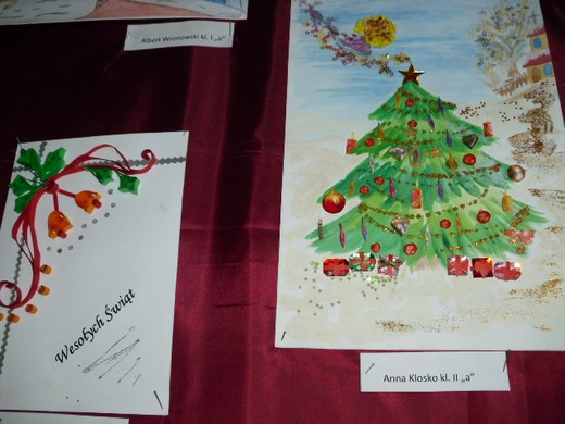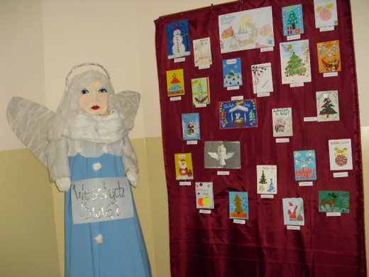 Prace uczniów przyczyniły się do zorganizowania wystawy w holu biblioteki, którą można oglądać w okresie świątecznym. Szczególne podziękowania kieruję do Beaty Budzińskiej, instruktora Gminnego Ośrodka Kultury i Promocji w Baniach Mazurskich za uświetnienie wystawy poprzez wykonanie dodatkowej dekoracji w postaci świetlistego anioła.