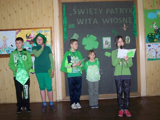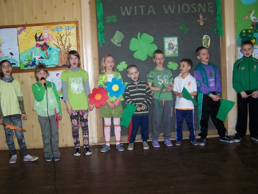 LISY. Pod takim hasłem uczniowie ze Szkoły Podstawowej w Lisach świętowali 21 marca pierwszy dzień wiosny. W tym dniu nasza szkoła zmieniła się w ogród pełen wiosennych barw. Stało się to za sprawą pięknych, wiosennych plakatów wykonanych przez uczniów i zielonego koloru, który nawiązywał do obchodów narodowego święta Irlandii - Dnia Świętego Patryka. W klimat zielonych wysp wprowadzili nas uczniowie klasy IV i V, którzy pod kierunkiem Luizy Puszyny, nauczycielki języka angielskiego przedstawili historię i tradycje związane z obchodami tego święta.