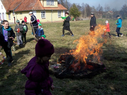 Aby się o tym przekonać udaliśmy się na jej powitanie. Barwnym korowodem, z przygotowanymi wcześniej ekologicznymi marzannami, ruszyliśmy przez wieś Lisy. Wiosennymi okrzykami, kolorowymi kwiatami i chorągiewkami, głosiliśmy nadejście wiosny, czym wzbudziliśmy niemałe zainteresowanie wśród mieszkańców. By tradycji stało się zadość, po przemarszu marzanny – „zimowe panny" zostały uroczyście pożegnane - spalone. Pa, pa zimo!