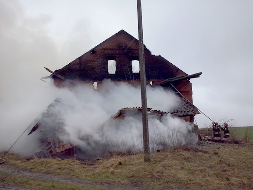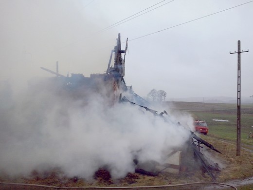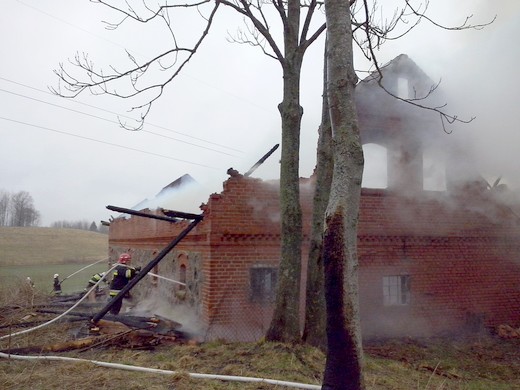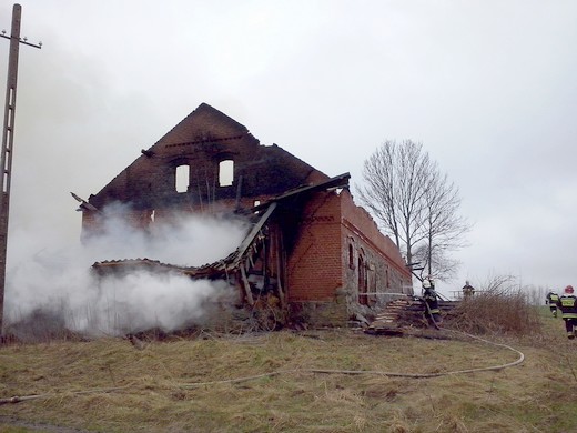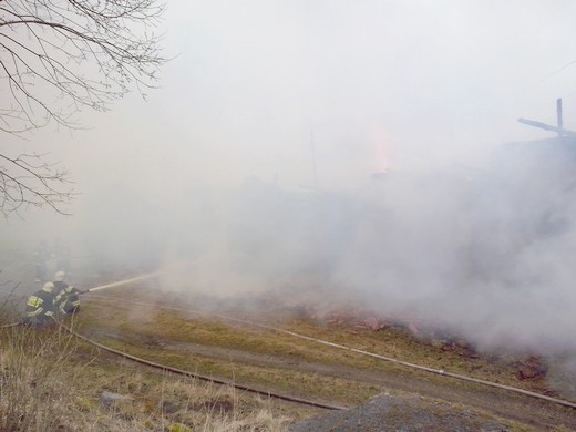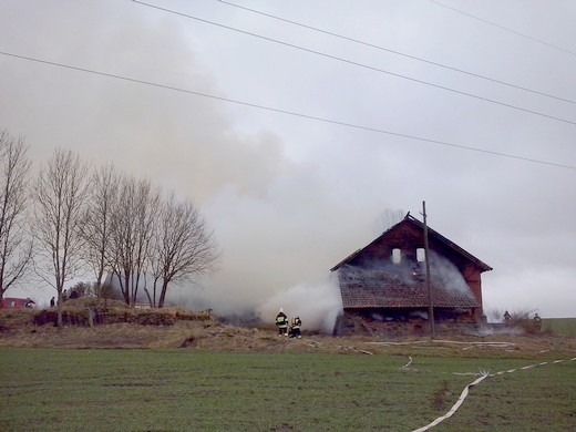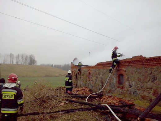 SAPAŁÓWKA. Wczoraj kilkanaście minut po godzinie 14 dyżurny stanowiska kierowania Komendanta Powiatowego PSP w Gołdapi otrzymał zgłoszenie o pożarze budynku inwentarskiego w Sapałówce. W akcji udział brały dwa zastępy gołdapskich strażaków, dwa zastępy z OSP Banie Mazurskie oraz jeden zastęp z OSP Surminy. Działania strażaków polegały na podaniu wody do wnętrza płonącego budynku oraz obronie pozostałych zabudowań gospodarczych. Problemem podczas akcji gaśniczej okazał się brak punktów pozyskania wody w pobliżu prowadzonych działań. Wodę dostarczano z rzeki oddalonej od źródła ognia o ok. 500m. Podczas pożaru uległ zniszczeniu budynek inwentarski, składowane w nim siano i nawóz sztuczny. Uratowane mienie szacuję się na kwotę ok. 50 tys. zł.