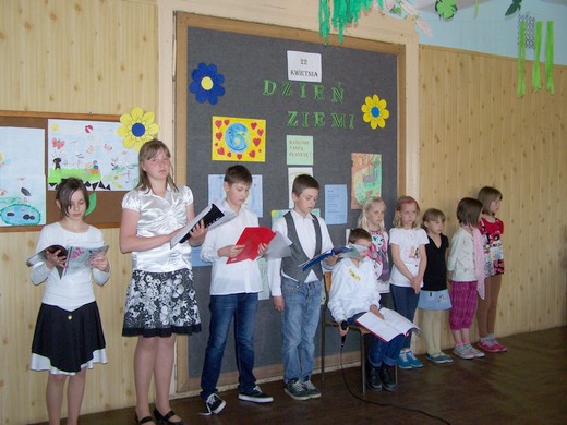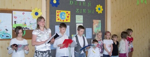LISY. 23 kwietnia uczniowie Szkoły Podstawowej w Lisach wzięli udział w obchodach Światowego Dnia Ziemi. W myśl hasła tegorocznej akcji „Zmieniaj nawyki – nie klimat!", uczniowie klasy IV i V przedstawili bardzo pouczający i skłaniający do refleksji montaż słowno-muzyczny "Ratujmy naszą planetę". Z zaciekawieniem wysłuchaliśmy przykładów na to, jak niewłaściwe postępowanie człowieka powoduje nasilenie efektu cieplarnianego i zmiany klimatyczne na Ziemi, co w konsekwencji może doprowadzić do katastrofy ekologicznej. Dowiedzieliśmy się co my mieszkańcy zielonej planety powinniśmy zrobić, by żyć w czystym środowisku, nie stwarzając zagrożenia dla siebie samych, jak również dla świata roślin i zwierząt. Ponadto uświadomiliśmy sobie jak ważne jest reagowanie na zachowania zagrażające naszej planecie poprzez zmianę swoich nawyków w zakresie oszczędzania wody, energii elektrycznej, segregowania i ograniczania odpadów.