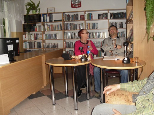 BANIE MAZ. 12 maja w Gminnej Bibliotece Publicznej w Baniach Mazurskich gościliśmy aktorów olsztyńskiego Teatru przy Stoliku. W spektaklu „Wariatka" Nadieżdy Ptuszkiny główne role zagrali: Wiesława Niemaszek-Szymańska i Marcin Kiszluk. Sztuka utrzymana w klimacie humorystyczno- refleksyjnym dotyczyła ponadczasowej problematyki miłości kobiety i mężczyzny. Bohaterowie dzieląc się własnymi pragnieniami i marzeniami w rzeczywistości z różnych powodów nie zaznali pełni szczęścia w życiu osobistym. I kiedy wydawałoby się, że wszystko zmierza ku szczęśliwemu zakończeniu – los znów zadrwił z obojga...