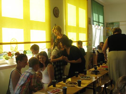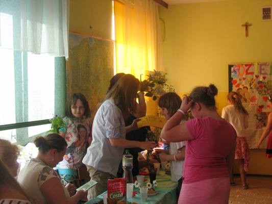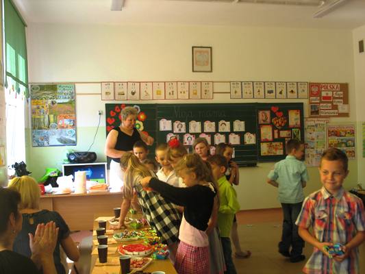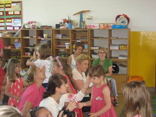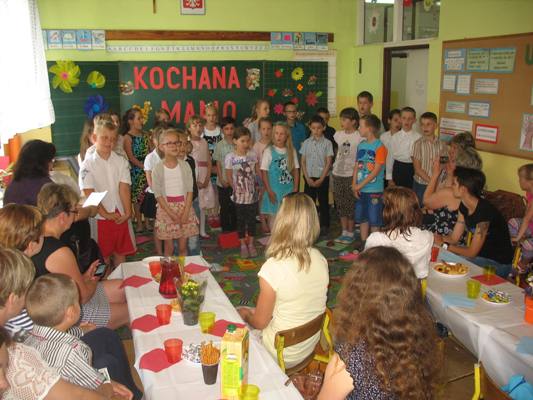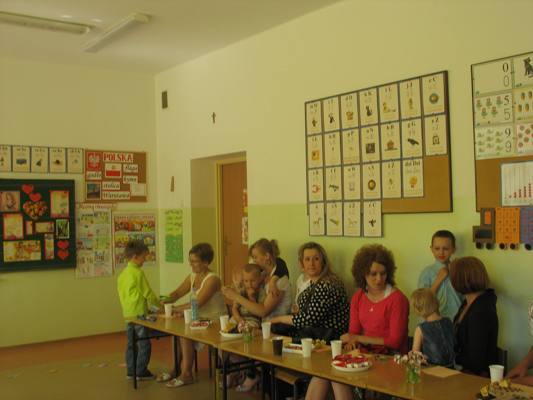 Po prezentacji słowno-muzycznej wszyscy zasiedli do słodkiego poczęstunku. Nie zabrakło zabaw z dziećmi przy muzyce. W trakcie różnych zabaw mamy mogły odnaleźć swoje portrety lub opis mamy.