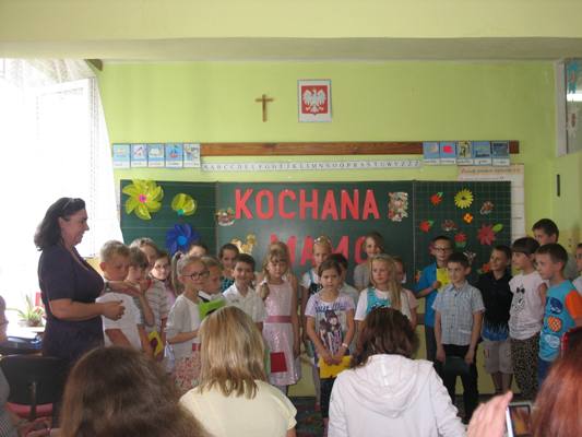 Z tej okazji uczniowie z klas 0-3 z Zespołu Placówek Oświatowych w Baniach Mazurskich zaprosili gości do swoich sal, aby obejrzeli przygotowaną pod kierunkiem wychowawców część artystyczną. Najmłodsi artyści pięknie recytowali wiersze i śpiewali piosenki skierowane do mam. Na zakończenie części artystycznej dzieci wręczyły zaproszonym gościom własnoręcznie wykonane prezenciki, kwiaty, laurki. Złożyły najserdeczniejsze życzenia, którym towarzyszyły mocne uściski i całusy. Nie odbyło się bez wzruszeń i zachwytu mam.