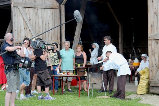 LISY. Na zaproszenie Gołdapskiego Funduszu Lokalnego, 5 czerwca w Ekomuzeum Trzy Dęby w Lisach przebywała grupa turystów z Anglii oraz towarzysząca im ekipa filmowa znanego kanału telewizji brytyjskiej. Turyści i filmowcy zainteresowani są formami turystyki poznawczej, w której ważne znaczenie ma poznawanie lokalnych atrakcji w sposób aktywny, wszystkimi zmysłami. Taką ofertę tworzą Ekomuzea Mazur. Barwną grupę Anglików przyjęli mieszkańcy Lis na terenie gospodarstwa Piotra Maczugi. Goście spróbowali swoich sił przygotowując figury z siana oraz przygotowując tradycyjne potrawy. Nie mniej fascynowała ich otaczająca przyroda, zwierzęta domowe i dawne sposoby przygotowania masła czy wafli. Goście byli pod wielkim wrażeniem wszystkiego, czego spróbowali i doświadczyli w Lisach.