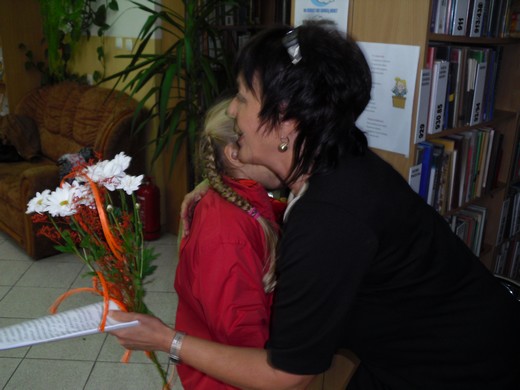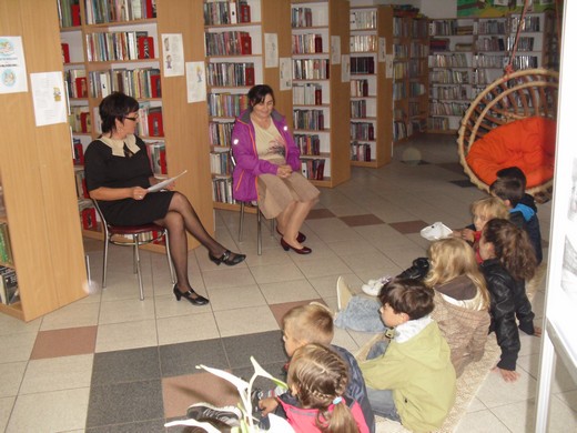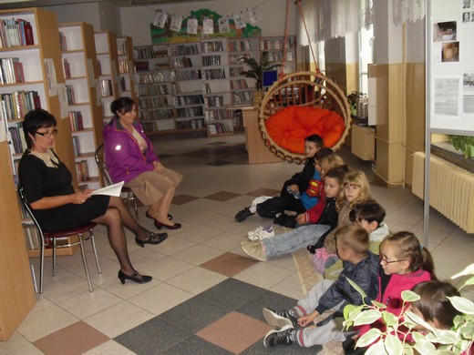 BANIE MAZ. 30 września w Gminnej Bibliotece Publicznej w Baniach Mazurskich odbyło się spotkanie dzieci z klas II-III szkoły podstawowej z Ireną Łobacz, pełniącą obecnie obowiązki wójta gminy Banie Mazurskie. W ramach działań wielokulturowych prowadzonych przez bibliotekę dzieci wysłuchały bajki w języku ukraińskim pt. "Jak zając oszukał niedźwiedzia". Co jest ważne, od niedawna maluchy rozpoczęły naukę tego języka w naszej szkole i o dziwo nie miały większego problemu ze zrozumieniem treści. Zresztą pani wójt wcieliła się w rolę tłumacza, przekładając na język polski niezrozumiałe treści. Uczniowie z zainteresowaniem wysłuchały bajeczki, a w podziękowaniu wręczyły Irenie Łobacz kwiaty. Na koniec spotkania był słodki poczęstunek dla wszystkich.