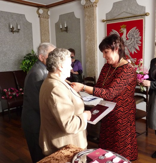 W uroczystości uczestniczyły również przewodnicząca rady gminy Krystyna Kokolus i zastępca kierownika Urzędu Stanu Cywilnego Dorota Podgórna-Ćwik. Uroczystego aktu dekoracji medalami dokonała wójt Bań Mazurskich Irena Łobacz. Składając gratulacje jubilatom podkreśliła, że są chlubą naszej społeczności, pięknym wzorem dla przyszłych pokoleń oraz bezcennym przykładem promującym trwałość związku małżeńskiego i wartość życia rodzinnego.