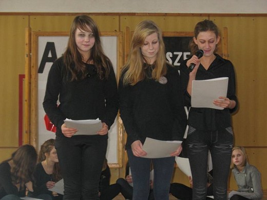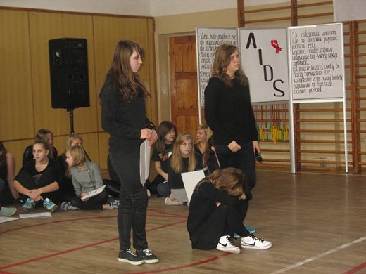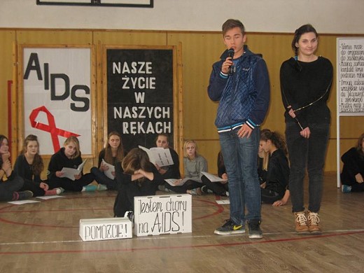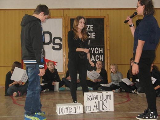Przedstawienie przygotowali uczniowie kl. IIa i IIb gimnazjum pod kierunkiem Krystyny Lewkowicz i Małgorzaty Groch. W rolę głównej bohaterki wcieliła się Daria Kokocka. Jej wypowiedzi były przeplatane niezwykle poruszającymi poetyckimi wyznaniami. Najbardziej zapadł widzom w pamięci wiersz „Dziecko z AIDS żyjące w świecie dzisiejszym", który recytował Jakub Stańczuk, uczeń kl. III.