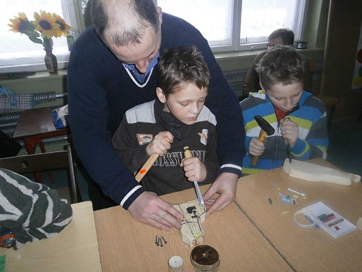 Dzięki zaangażowaniu członków Stowarzyszenia Inicjatyw Społecznych „Nadzieja" w Lisach zorganizowane zostały dodatkowe warsztaty. Uczniowie naszej szkoły mieli okazję podpatrzeć, jak wyrabia się drobne przedmioty z drewna. Mogli wykonać zabawki w dawny, tradycyjny sposób, albo upiec chleb i podpłomyki. Warsztaty te pokazały najmłodszym, czym jest rękodzieło oraz przybliżyły im zagadnienia z zakresu historii i kultury naszego regionu.