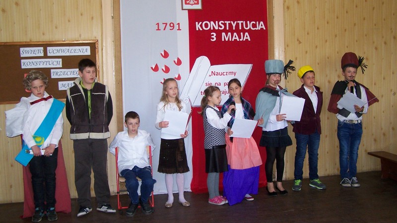 LISY. 30 kwietnia uczniowie Szkoły Podstawowej w Lisach uczcili 224 rocznicę uchwalenia Konstytucji 3 Maja w patriotycznym spektaklu „Nauczmy się na pamięć tego kraju...". Na szkolnej scenie pojawiły się barwne postacie z 1791 roku: szlachta, chłopi, mieszczanie a także marszałek sejmu i król Stanisław August Poniatowski. Przedstawiły one najważniejsze postulaty mówiące o zmianie władzy w państwie. Część inscenizacji dotycząca obrad Sejmu Wielkiego wzbudziła największe emocje. Uchwalenie tak wielkiego aktu miało przecież służyć uregulowaniu zasad funkcjonowania kraju, zjednoczeniu całego narodu i wskazanie mu drogi do niepodległości, miało być ostatnią szansą na ocalenie Polski.