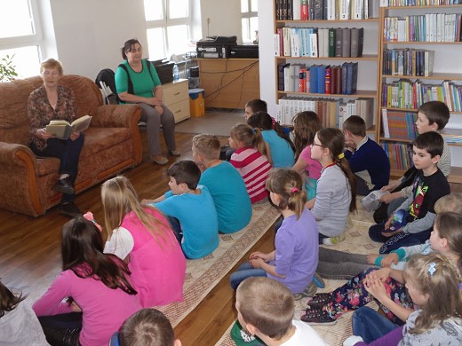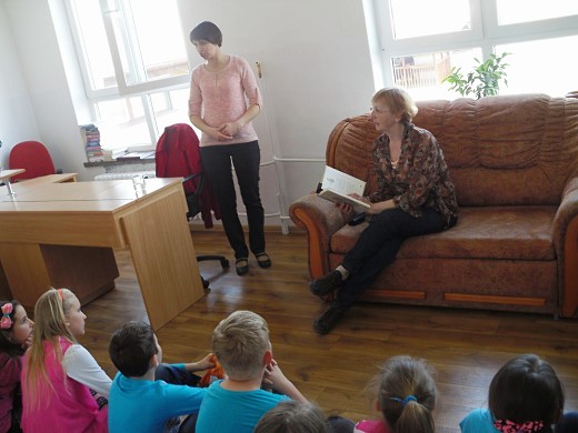BANIE MAZ. W ramach akcji "Cała Polska czyta dzieciom" gościliśmy w Gminnej Bibliotece Publicznej w Baniach Mazurskich panią Teresę Kapuśniak, byłą nauczycielkę języka rosyjskiego w Zespole Placówek Oświatowych w Baniach Mazurskich. Uczniowie klasy III wraz z wychowawczynią Krystyną Wankewycz z zainteresowaniem wysłuchali bajek ze zbioru "Wierzbowa 13" autorstwa Natalii Usenko i Danuty Wawiłow. Trzy bajki dydaktyczne: "Bajka o Trzech Świnkach", "Czerwony Kapturek i Wesoła Babunia" oraz "Bajka o Jasiu i ziarenku Boa" zawierały treści wychowawcze, kształcące najmłodszych oraz elementy humorystyczne. Wszyscy uczestnicy spotkania otrzymali pamiątkowe zakładki oraz słodkości. Dziękujemy sympatycznym uczniom klasy III, miłej wychowawczyni Krystynie Wankewycz i zawsze uśmiechniętej Teresie Kapuśniak, która doskonale wczuła się w rolę czytającej i znakomicie naśladowała postacie.