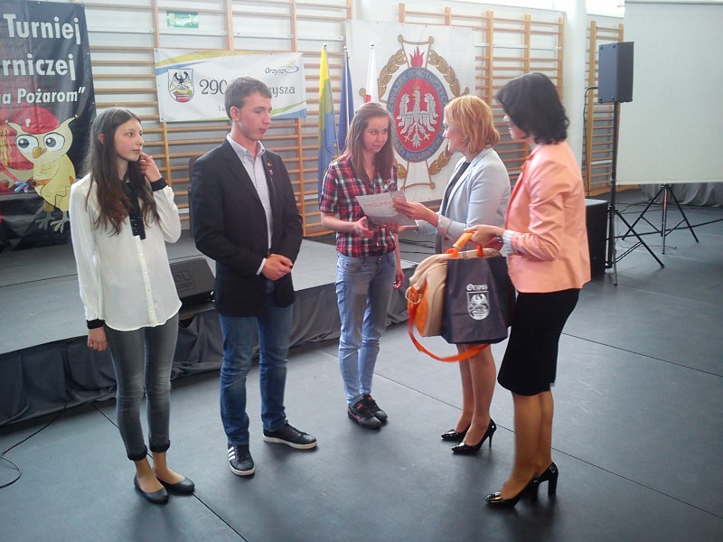 ORZYSZ. 29 kwietnia odbyły się eliminacje wojewódzkie XXXVIII Ogólnopolskiego Turnieju Wiedzy Pożarniczej "Młodzież zapobiega pożarom". Zakwalifikowały się do nich trzy osoby – zwycięzcy marcowych eliminacji powiatowych: Aleksandra Misiewicz (SP w Pogorzeli), Wioleta Aftyka (Zespół Placówek Oświatowych w Baniach Mazurskich) i Krystian Szyksznian (LO w Gołdapi). Do Orzysza zdecydowały się pojechać tylko dziewczęta. I warto było! Wioleta Aftyka zajęła I miejsce w konkursie w kategorii szkół gimnazjalnych i zapewniła sobie udział w finale krajowym. Planowany on jest w dniach 25-31 maja w Polanicy Zdroju. Gratulujemy i powodzenia!