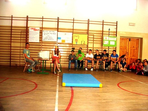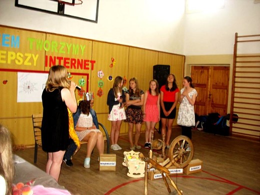 Z tej okazji uczniowie z klasy I, II gimnazjum oraz III szkoły podstawowej pod kierunkiem Elżbiety Piniagi przygotowali przedstawienie pt. „Różyczka w szponach sieci", na które przybyli uczniowie z klas 0–6 wraz z wychowawcami.