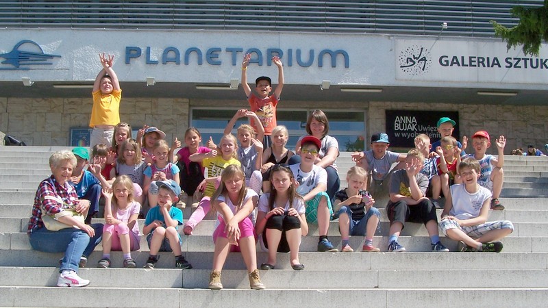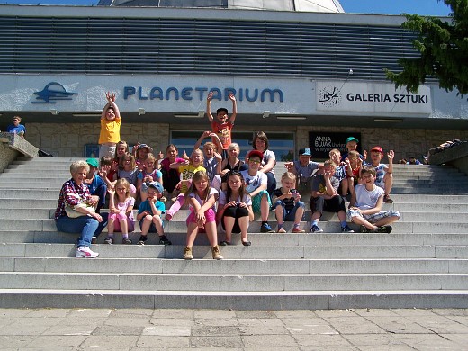 Po pobycie w Warmiolandii udaliśmy się do planetarium na projekcję pt. „Ziemia, Księżyc, Słońce". Podziwialiśmy nie tylko wiele efektownych zjawisk zachodzących w Kosmosie, ale też wysłuchaliśmy indiańskich legend, a dzięki zabawnym żartom animowanego kojota, wykładem interesowali się zarówno starsi, jak i maluchy.
