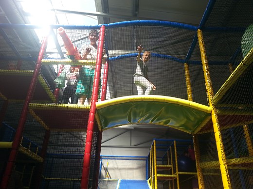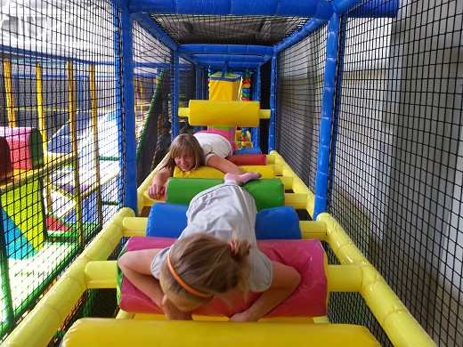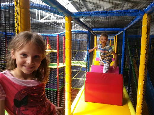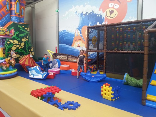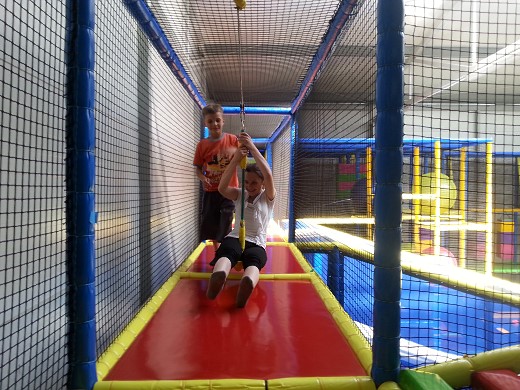 Wczesnym rankiem uczestnicy wyjazdu próbowali sobie wyobrazić, jak może wyglądać miejsce, będące odpowiednikiem wielkiego placu zabaw i aktywności fizycznej dla dzieci. Pomysłów było mnóstwo, jednakże to, co zastaliśmy po wejściu do Warmiolandii, przeszło nasze najśmielsze oczekiwania. Czekała na nas opiekunka - animatorka, która czuwała nad bezpieczeństwem dzieci oraz pomagała w wyborze niezliczonych atrakcji. Była ogromna nadmuchiwana zjeżdżalnia; pełen kryjówek i tuneli labirynt, a w nim mnóstwo przeszkód: ogromne piłki, łańcuchy z piłeczek, mosty, zjeżdżalnia linowa, różne podwyższenia służące często jako schody; zaskoczyć mogły też trampoliny, armatki, małe boisko, podwójna zjeżdżalnia z basenem wypełnionym piłeczkami oraz wspaniała zjeżdżalnia spiralna. Wszystko to stanowi 1400 metrów kwadratowych kładek i ścieżek położonych na czterech poziomach, więc zanim uczniowie „zwiedzili" cały labirynt, zdążyli solidnie się zmęczyć. Dużym zainteresowaniem cieszył się tor do jazdy samochodzikami elektrycznymi. Gdy wszyscy spróbowali swoich sił w wyścigu bolidów, pewien szalony naukowiec z czerwoną czupryną zabrał nas do sali dydaktycznej, gdzie zaprezentował wszystkim wiele ciekawych doświadczeń i zjawisk przyrodniczych. Po posiłku nasi uczniowie znów zajmowali się tym, co je interesowało najbardziej. Jedni po raz kolejny „zdobywali" labirynt, inni jeździli różnymi pojazdami, a także sprawdzali swoje możliwości na automatach do gier dla dzieci.