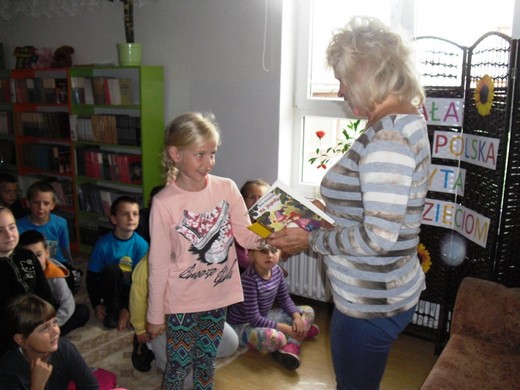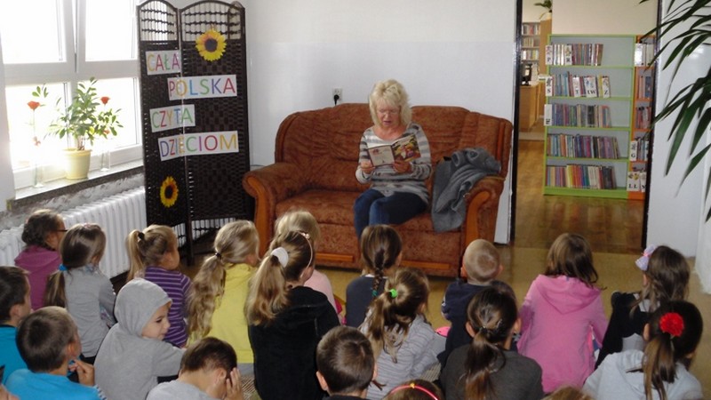 BANIE MAZ. 23 września w oddziale dla dzieci Gminnej Biblioteki Publicznej w Baniach Mazurskich odbyło się pierwsze powakacyjne spotkanie w ramach ogólnopolskiej akcji „Cała Polska czyta dzieciom”. Gościem zaproszonym była Jadwiga Abramowicz – emerytowana nauczycielka języka polskiego i historii, która pełniła również funkcję wicedyrektora ds. gimnazjum w Baniach Mazurskich. Na głośne czytanie przyszli uczniowie klas drugich miejscowej szkoły podstawowej wraz z wychowawczyniami: Ewą Szymańską i Urszulą Świerzbin.