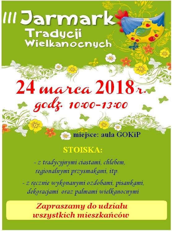 BANIE MAZ. W sobotę, 24 marca w godzinach 10.00-13.Gminny Ośrodek Kultury i Promocji zaprasza do auli na III Jarmark Tradycji Wielkanocnych.