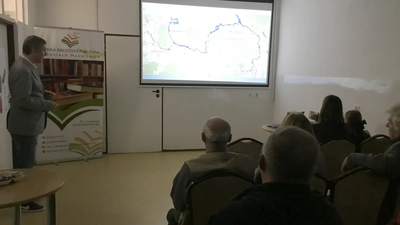 Podczas spotkania promującego książkę pt. "Kanał Mazurski. Monografia nieukończonej drogi wodnej" rozmawialiśmy jednak o innym kanale - Kanale Brożajckim, który leży na granicy gminy Banie Mazurskie. Pan Krzysztof przygotował prezentację i wykład o historii i celu budowy kanału. Podczas spotkania przedstawił liczne mapy, fotografie dokumentujące infrastrukturę kanału. Opowiadał o kulisach budowy, podejmowanych sposobach odnowy kanału oraz materiałach źródłowych, które zdobył między innymi w Niemczech. Jego badania, wsparte zawodową znajomością tematu, pozwoliły zgromadzić unikalną dokumentację techniczną i historyczną.