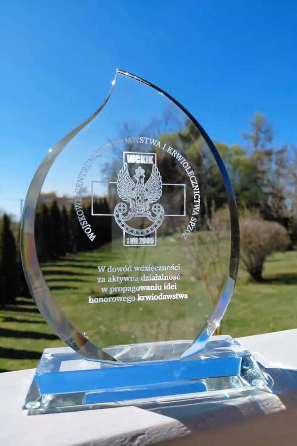 Podczas akcji na ręce prezesa naszej jednostki, w imieniu całego zespołu Wojskowego Centrum Krwiodawstwa i Krwiolecznictwa SPZOZ Terenowej Stacji w Ełku, została wręczona „Kryształowa Kropla”. To wyróżnienie jest dowodem wdzięczności za naszą aktywną działalność w propagowaniu idei honorowego krwiodawstwa.