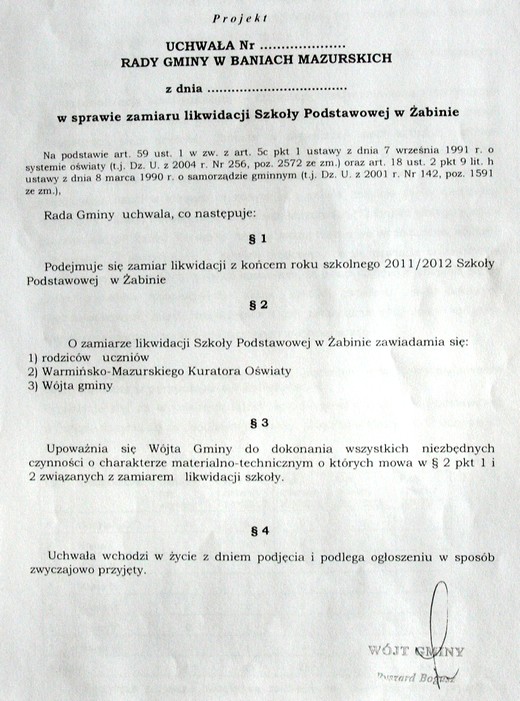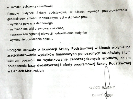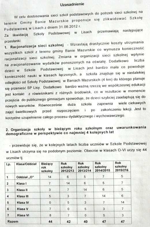 Radni na dzisiejszej sesji Rady Gminy Banie Mazurskie zdecydowali o przyjęciu uchwał w sprawie zamiaru likwidacji szkół w Lisach i Żabinie. W obu przypadkach za było 9 radnych, 2 przeciw (Dejnak, Domański), 3 wstrzymało się od głosu (Baran, Budka, Kulbacki).
