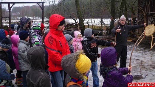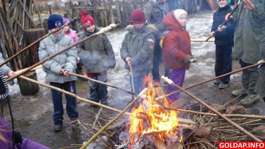 25 lutego Gminna Biblioteka Publiczna w Baniach Mazurskich zorganizowała wycieczkę do "Biegnącego Wilka". Dzieci ze szkoły podstawowej (31 podopiecznych i 2 opiekunów) w doskonałych nastrojach wyruszyły do malowniczej osady w Ściborkach. Mimo niezbyt sprzyjającej aury pogodowej wszyscy uczestnicy z uśmiechem na ustach wkroczyli na teren gospodarstwa państwa Morsztynów. Pani Justyna już na wstępie poinformowała o zasadach obowiązujących w Republice Ściborskiej. Następnie pod jej przewodnictwem zwiedziliśmy muzeum, w którym obejrzeliśmy niezwykłe pamiątki z życia Indian i Eskimosów. Zostaliśmy też oprowadzeni po niedawno otwartym muzeum Marii Rodziewiczówny, autorki książki "Lato leśnych ludzi". Miejsce i klimat niezwykły, bo przeniósł nas w czasy życia pisarki. Poznaliśmy ludzi, którymi się otaczała i miejsca szczególnie bliskie jej sercu. Wyjazd "Biegnącego Wilka" do Norwegii stał się okazją do zadawania pytań odnośnie wyprawy przez uczestników wycieczki. Pytano się między innymi o długość trasy, ilość psów w zaprzęgu, a nawet o pożywienie. Dzieci obejrzały też strój maszera psich zaprzęgów i przykładowe sanie zaprzęgowe. Największą jednak atrakcją dla dzieci było strzelanie z łuku i pieczenie podpłomyków w ognisku. Po dwugodzinnym pobycie w osadzie państwa Morsztynów uśmiechnięci i zadowoleni z wycieczki udaliśmy się w drogę powrotną. Obiecaliśmy, że wrócimy tu za rok na przejażdżkę psim zaprzęgiem.