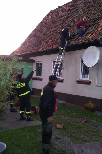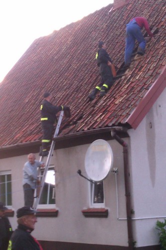 Podziękowania dla strażaków z OSP Banie Mazurskie za profesjonalną pomoc w usuwaniu zniszczeń powstałych w wyniku silnego wiatru i "małej traby powietrznej", która przeszła w miniony czwartek około godziny 20 w Baniach Mazurskich. Największe zniszczenia miały miejsce przy ulicy Kościuszki. Wichura łamiąc konary drzew, zniszczyła dachy na budynkach mieszkalnych, budynkach gospodarczych, zerwała linie elektryczną. Strażacy Ochotniczej Straży Pożarnej z Bań Mazurskich, pomogli w usunięciu połamanych gałęzi oraz zabezpieczeniu dachów. Na nich można zawsze liczyć. Serdecznie dziękujemy.