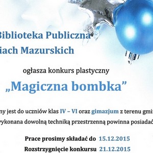 BANIE MAZ. Gminna Biblioteka Publiczna w Baniach Mazurskich ogłasza konkurs pt. „Magiczna bombka”.