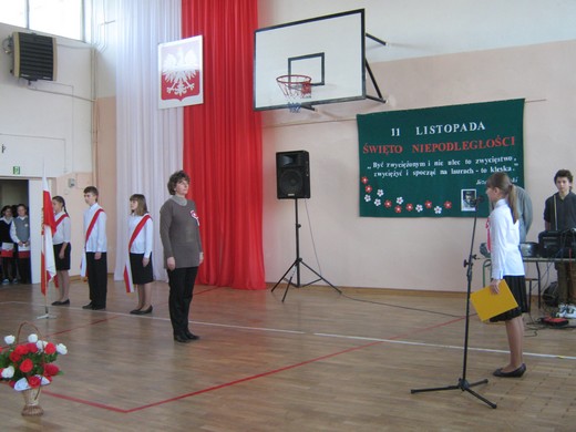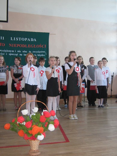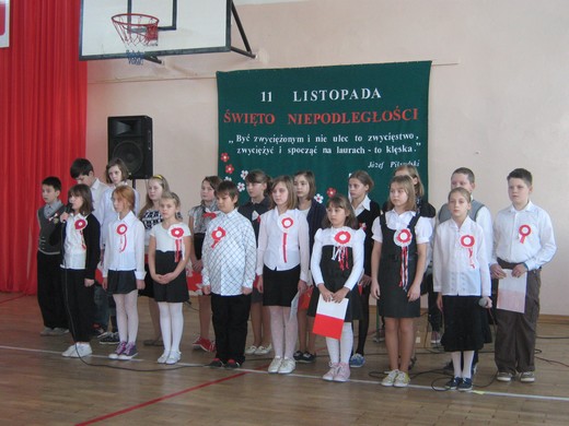 Uczniowie pięknie recytowali wiersze i śpiewali pieśni legionowe i żołnierskie. „Legiony to żołnierska nuta; Legiony to straceńców los; Legiony to żołnierska buta; Legiony to ofiarny stos. My Pierwsza Brygada, strzelecka gromada; Na stos rzuciliśmy swój życia los; Na stos, na stos" - rozbrzmiewały w szkole słowa pieśni. Uroczystość stała się okazją do poznania historii, skłoniła do refleksji i zadumy. Apel został przygotowany przez uczniów klasy IV i V pod opieką Beaty Staśkiewicz, Bożeny Jakubowskiej oraz wsparciu Anny Krygier i Barbary Ostapionek.
