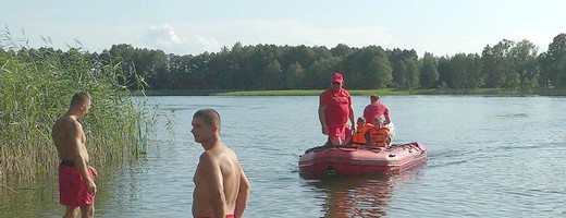 KIEPOJCIE. Pokaz udzielania pierwszej pomocy oraz ratownictwa wodnego przeprowadzili wczoraj nad jeziorem Przerośl na plaży w Kiepojciach członkowie gołdapskiego WOPR. Po nim chętni mogli z ratownikami popływać pontonem po jeziorze.