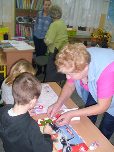 Dzieci z klas 0 i I z pomocą wolontariuszy sami przyklejali oczka misiom i ozdabiali je kolorowymi guziczkami. Wszyscy później przypięli breloczki do swoich plecaków. Jak się okazało, większość z nich posiada już elementy odblaskowe, ale świecące misie bardzo się podobały. Przygotowanie gadżetów i obdarowanie nimi najpierw dzieci podczas „Światowego Dnia Pluszowego Misia", a następnie najmłodszych uczniów szkoły, było ostatnim z działań podjętych przez wolontariuszy w Żytkiejmach w ramach mini projektu „Bezpiecznie i teatralnie z wolontariatem". Realizowany on był w ramach projektu "Wolontariat pozytywny wizerunek Krainy Łowców Przygód". Łącznie odblaskowymi maskotkami obdarowano 45 dzieci.