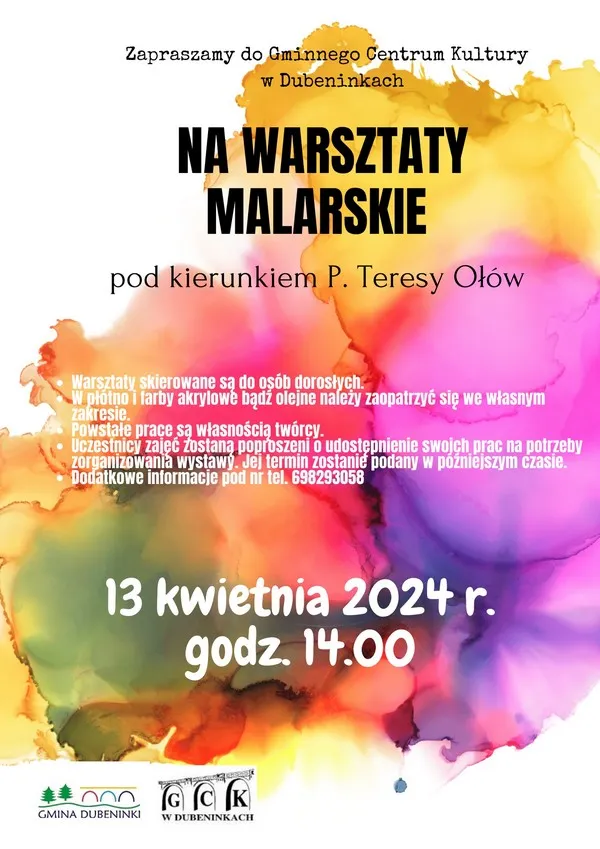 Kolejny warsztat z malarstwem organizuje w najbliższą sobotę Gminne Centrum Kultury w Dubeninkach. Jak zawsze zajęcia poprowadzi Teresa Ołów.