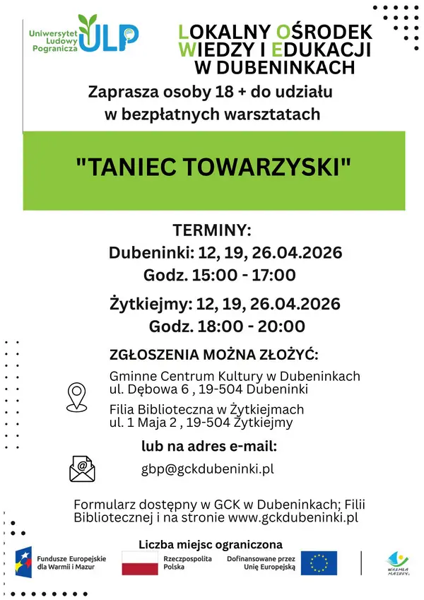 W ramach Uniwersytetu Ludowego Pogranicza, w dniach 5 i 6 marca w Gminnym Centrum Kultury w Dubeninkach odbyły się warsztaty kulinarne pt. "Słodkie przekąski".