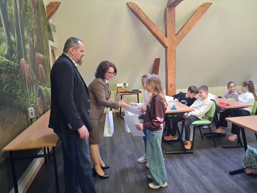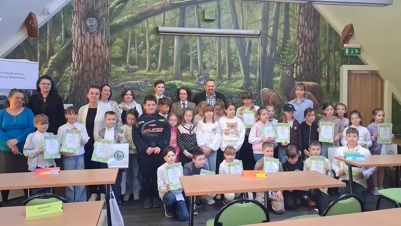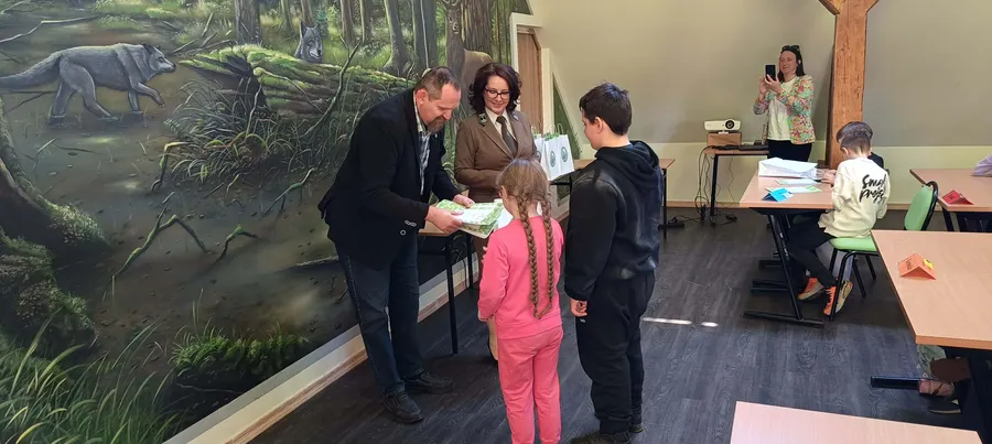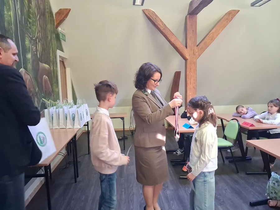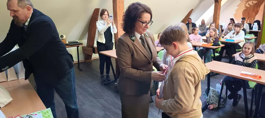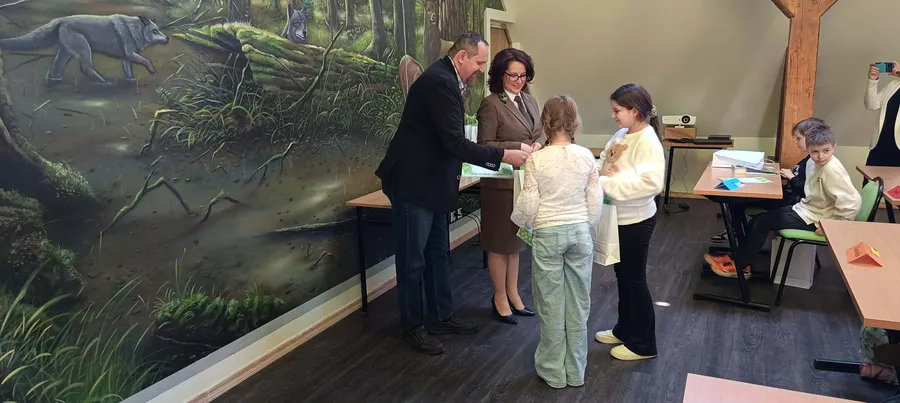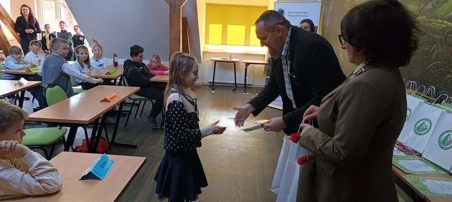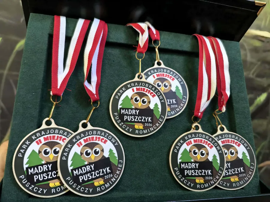 Zdobywcy 1, 2 i 3 miejsca otrzymali odznaki Mądrego Puszczyka 2026. Nagrody dla laureatów i pozostałych uczestników konkursu oraz upominki dla nauczycieli ufundowało Starostwo Powiatowe w Gołdapi oraz Park Krajobrazowy Puszczy Rominckiej.