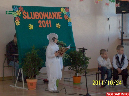 "Witaj szkoło, witaj nasza dobra szkoło" - słowami tej piosenki pierwszaki ze Szkoły Podstawowej w Dubeninkach rozpoczęły uroczyste ślubowanie. Kandydaci na uczniów nie mieli łatwo! Na początku przestraszył ich szkolny duszek, który dokładnie przeegzaminował dzieci. Obejrzał jak tańczą, posłuchał piosenek w ich wykonaniu. Następnie zapytał, co trzeba koniecznie zabrać ze sobą do szkoły, przy jakiej ulicy mieści się szkoła i czy znają imię i nazwisko jej dyrektora. Dzieci z zadań wywiązały się znakomicie, egzamin na uczniów zdały wręcz śpiewająco. Mogły, zatem złożyć uroczyste ślubowanie. Od tej chwili będą prawdziwymi uczniami - ze wszystkimi przywilejami, ale także i obowiązkami.