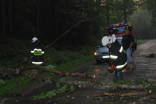 Burze i wichury, które w poniedziałek przeszły m.in. nad naszym powiatem, pozostawiły po sobie kilka śladów. W miejscowości Miczuły wiatr uszkodził dachówki na jednym z budynków gospodarczych. Strażacy usuwali zaś drzewa z dróg. Nasza czytelniczka z Żytkiejm przesłała zdjęcia z działań straży przy usuwaniu drzewa z drogi wojewódzkiej w pobliżu swojej miejscowości.