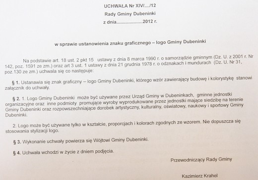 Logo to, jak wynika z treści uchwały rady, może być używane przez Urząd Gminy w Dubeninkach, gminne jednostki organizacyjne oraz inne podmioty promujące wyroby wyprodukowane przez jednostki mające siedzibę na terenie gminy Dubeninki oraz rozpowszechniające dorobek artystyczny, kulturalny, oświatowy, naukowy i sportowy gminy.