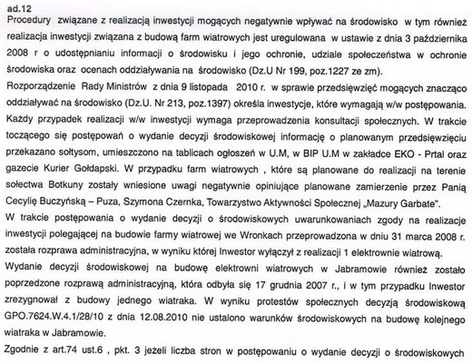 12. Proszę o podanie informacji na temat terminów poszczególnych etapów prawnych związanych z farmami wiatrowymi, tj.:
