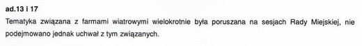 13. Proszę o podanie listy Radnych Rady Miejskiej (imię i nazwisko - na podstawie listy obecności w dniu głosowania) głosujących w w/w sprawach związanych z inwestycjami budowy farm wiatrowych na terenie gminy oraz wyniki poszczególnych głosowań w w/w sprawach. A w szczególności: