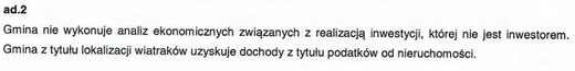 3. Proszę podać czy została w gminie wykonana przed podjęciem decyzji o budowie na terenie gminy farm wiatrowych (wprowadzenie do studium, miejscowy plan zagospodarowania przestrzennego) - analiza ekonomiczna związana z tą inwestycją? Jeśli tak, to prosimy o przekazanie jej potwierdzoną za zgodność z oryginałem kopii.