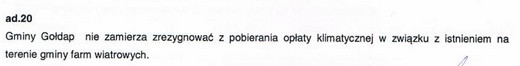 20. Czy w związku z istnieniem na terenie gminy farm wiatrowych gmina zamierza zrezygnować z pobierania opłaty klimatycznej?