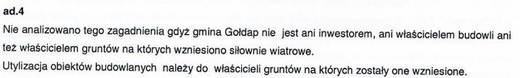 - utylizacji wiatraków i siłowni w przypadku np. wyeksploatowania, upadłości lub bankructwa ich właścicieli.