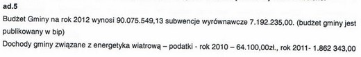 - wysokości odebranych subwencji zewnętrznych w związku z budową wiatraków