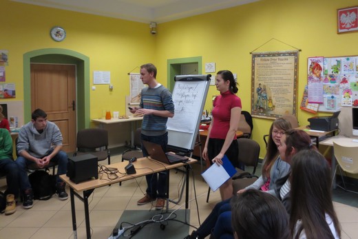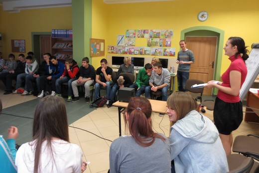 Spotkanie zorganizowane w ramach projektu "Link do przyszłości. Młodzi. Internet. Kariera", którego celem jest wspieranie młodych ludzi z małych miejscowości w planowaniu ich przyszłości zawodowej w sposób szeroki i nieszablonowy, uwzględniając rozwój społeczeństwa informacyjnego i gospodarki opartej na wiedzy. Projekt jest realizowany przez Fundację Rozwoju Społeczeństwa Informacyjnego ze środków Microsoft, w ramach inicjatywy „YouthSpark" oraz Polsko-Amerykańskiej Fundacji Wolności. Młodzież, która w najbliższej przyszłości będzie musiała wybrać drogę zawodową miała okazję dowiedzieć się, jak planować swoją przyszłość, uwzględniając rolę nowych technologii. Pierwszym punktem spotkania było powitanie i przedstawienie młodego profesjonalisty. Następnie w ramach rozgrzewki uczestnicy mieli za zadanie wykazać się kreatywnością. Przy okazji rozwinęliśmy swoją wiedzę na temat niektórych zawodów i dowiedzieliśmy się, np. kim jest rezydent, a kim spedytor.