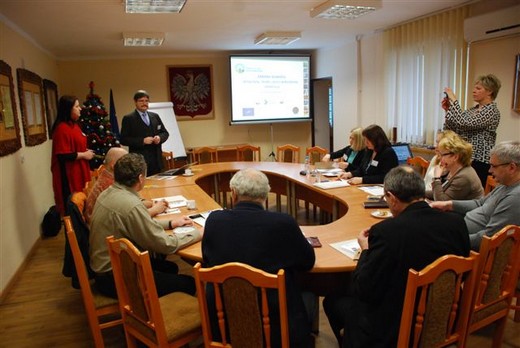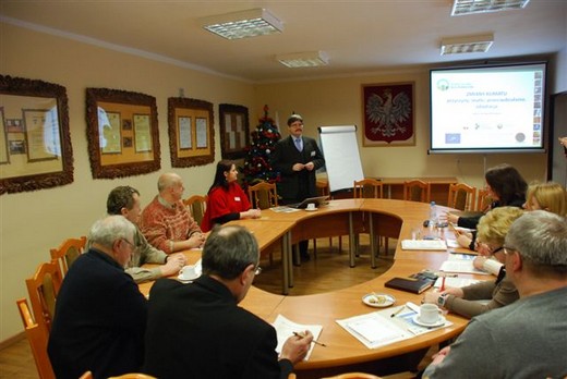 Dzięki uprzejmości starosty gołdapskiego, sala konferencyjna Starostwa Powiatowego w Gołdapi stała się miejscem debaty klimatycznej, która wczoraj skupiła przedstawicieli lokalnych instytucji i stowarzyszeń: Komendy Powiatowej Państwowej Straży Pożarnej, Stowarzyszenia na rzecz Zrównoważonego Rozwoju Suwalszczyzny i Mazur Garbatych „Horyzont", Fundacji „Dla Ziemi i Ludzi", Gołdapskiego Stowarzyszenia Pszczelarzy, Partnerstwa „Dzikie Mazury", Stowarzyszenia „Głos Puszczy Rominckiej" oraz pracowników Wydziału Budownictwa i Ochrony Środowiska Starostwa Powiatowego w Gołdapi. Część plenarną spotkania otworzyła wicestarosta Ewa Bogdanowicz-Kordjak, witając zebranych gości. Cel spotkania przedstawił Grzegorz Kubalski, ekspert reprezentujący Związek Powiatów Polskich (partnera projektu), który przekazał na ręce Ewy Bogdanowicz-Kordjak list Ministra Środowiska promujący ekologiczne debaty. Moderatorami dyskusji były: Joanna Godlewska i Dominika Dzwonkowska.