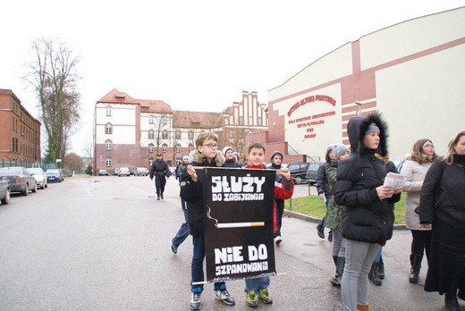 W piątek, 29 listopada funkcjonariusze z Komendy Powiatowej Policji w Gołdapi wzięli udział w profilaktycznej akcji z okazji obchodów „Światowego Dnia Rzucania Palenia", której głównym inicjatorem była Powiatowa Stacja Sanitarno-Epidemiologiczna w Gołdapi. Na długiej przerwie pomiędzy lekcjami policjanci wspólnie z pracownicą stacji, nauczycielką i szóstoklasistami ze Szkoły Podstawowej nr 3 przemaszerowali z transparentami wokół szkół i rozdawali ulotki, by zwrócić uwagę młodzieży gimnazjalnej oraz społeczeństwa na powszechność nałogu palenia papierosów i jego negatywnych skutków zdrowotnych.