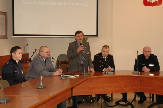 Trzy zespoły, które wchodzą w skład Zakładu Zarządzania Kryzysowego Instytutu Bezpieczeństwa i Porządku Publicznego tj.: łączności i informatyki, bezpieczeństwa państwa i operacji policyjnych wymieniły się wiedzą i doświadczeniami z podmiotami reprezentującymi różne gołdapskie instytucje. Należy tu zaznaczyć, że powyższe spotkanie jak i planowane po weekendzie seminarium naukowo-praktyczne jest efektem umowy o współpracy podpisanej przez burmistrza Gołdapi i komendanta - rektora Wyższej Szkoły Policji w Szczytnie, a której inicjatorem był m.in. mł. insp. Andrzej Żyliński.
