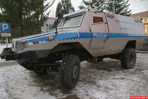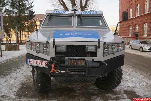 Argus – tak nazywa się ten pojazd – jest na wyposażeniu Wyższej Szkoły Policji w Szczytnie. Ma napęd na 4 koła, 6 litrowy silnik i waży 15 ton. W Gołdapi pojawił się w związku z odbywającym się w naszym mieście od dziś do środy seminarium naukowo-praktycznym pn. „Wybrane aspekty zarządzania w sytuacjach kryzysowych".