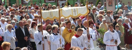 GOŁDAP. Tłumy gołdapskich wiernych uczestniczyły dziś w procesji z okazji Bożego Ciała. Wierni i kapłani modląc się przeszli ulicami Gołdapi. Procesja zatrzymywała się przy czterech wcześniej przygotowanych ołtarzach, gdzie czytane były fragmenty ewangelii.