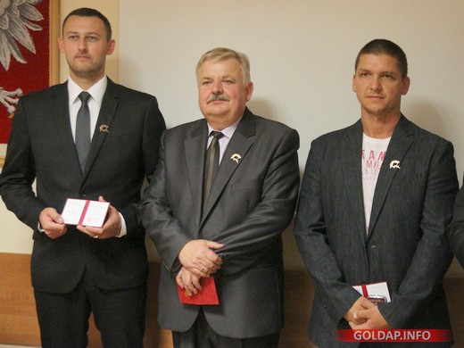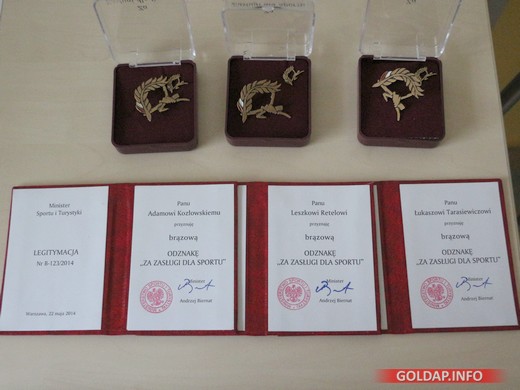 GOŁDAP. Podczas sesji rady powiatu, która dziś w południe odbyła się w Starostwie Powiatowym, Łukasz Tarasiewicz, Adam Kozłowski i Leszek Retel odebrali z rąk starosty brązowe odznaki za „Zasługi dla sportu". Zostały one przyznane w maju br. przez ministra sportu Andrzeja Biernata.